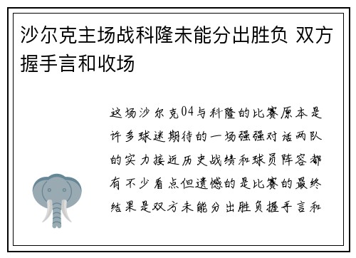 这场沙尔克04与科隆的比赛,原本是许多球...