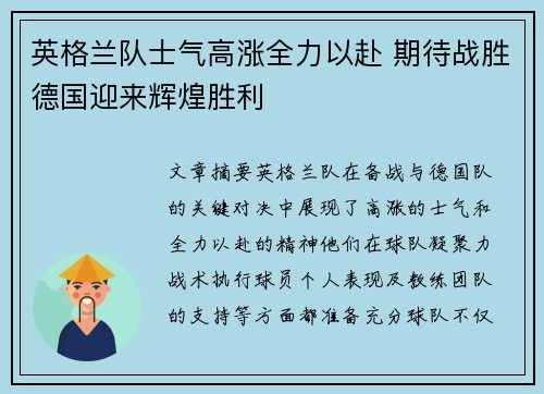 文章摘要:英格兰队在备战与德国队的关键对...